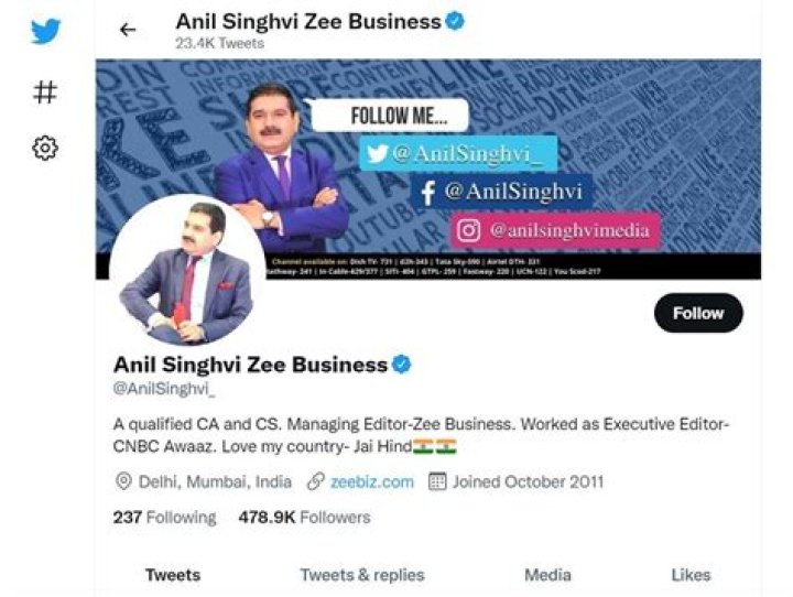 Anil Singhvi (born 2 June 1970, Age: 51 years) is a Journalist, News anchor, and managing director at Zee Business. It is a Hindi language-based business ...