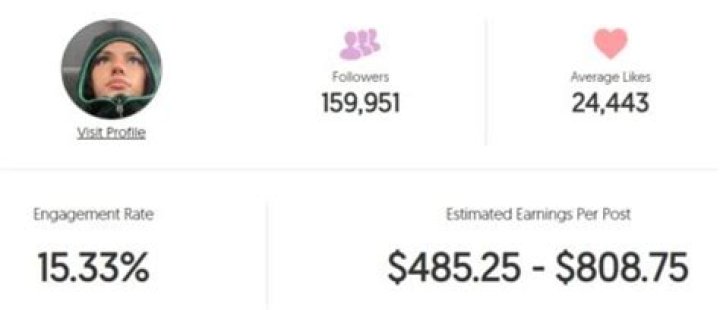 The average follower engagement rate for each of Colleen’s most recent 15 posts is 3.51%. Because of this, it is estimated that she makes between $549.75 and $916.25 each sponsorship.